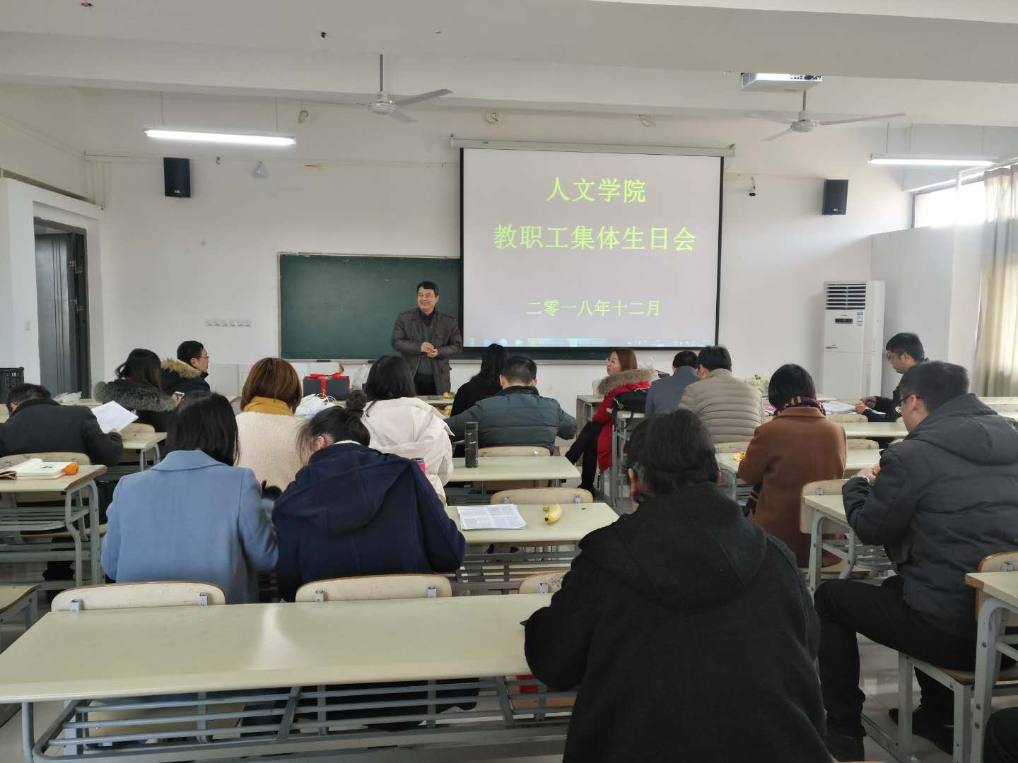 12月14日上午,大发娱乐城 在大发A333教室举办2018年教职工集体生日会,分工会主席主持会议,大发党政领导和全体教师参加了集体生日会。