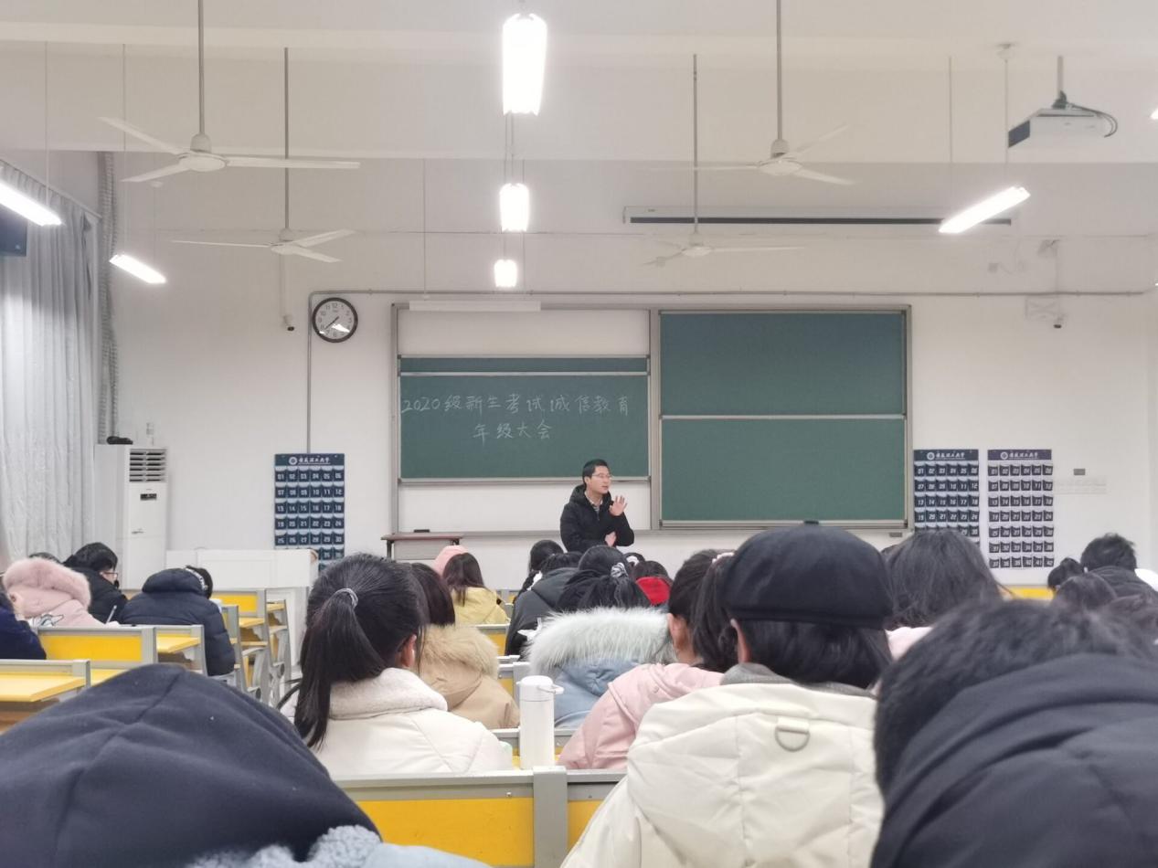 为加强大发学风建设,端正考风,严肃考纪,营造文明、诚信考试的良好氛围,提高学生的思想道德品质,12月30日晚,大发娱乐城 在明理南112教室举办2020级新生考试诚信教育动员会,会议由辅导员闪诚章老师主持,200余位新生参与。