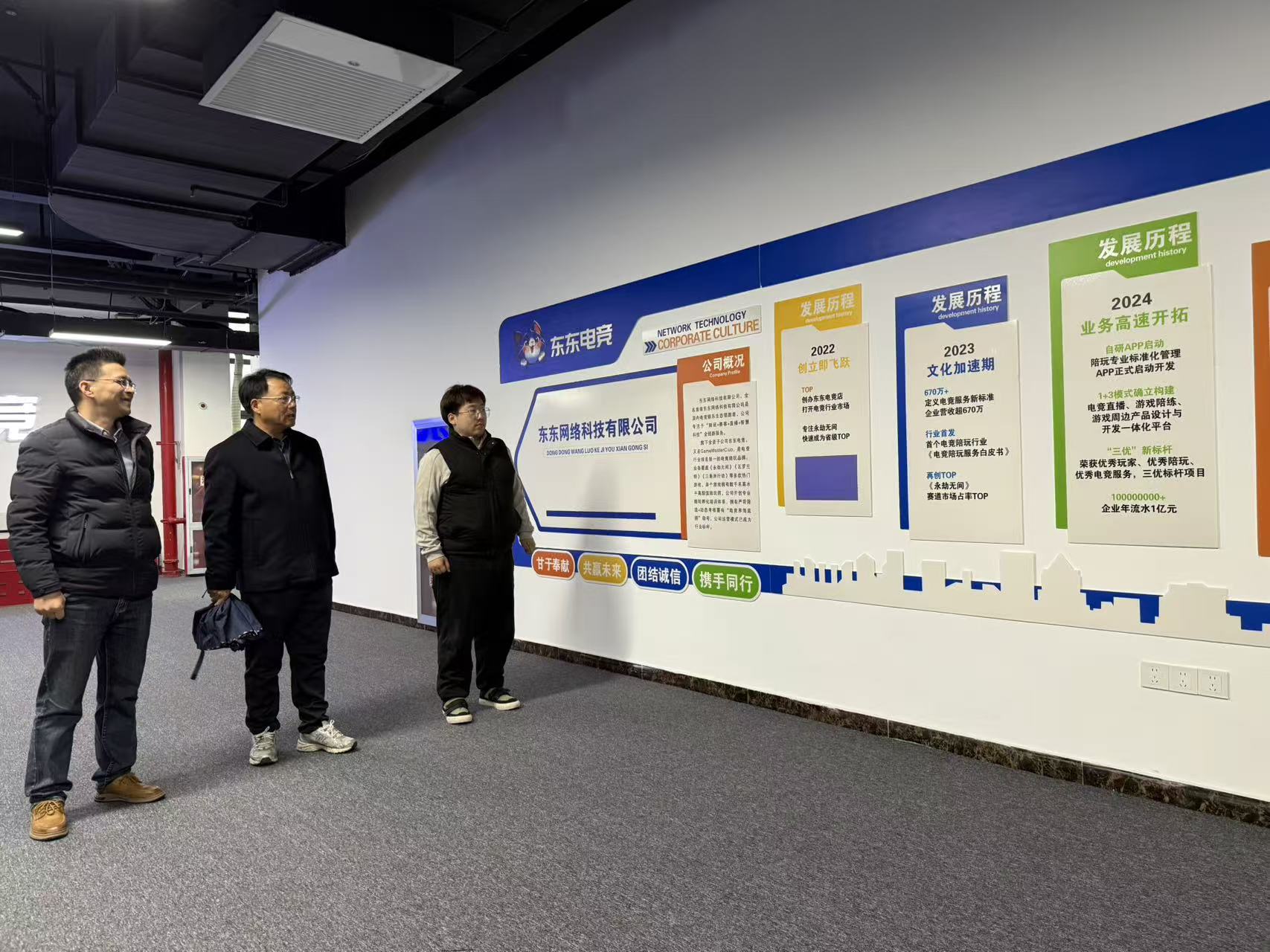 刘旭东热情接待王书记一行,详细介绍了公司的运营现状、业务布局及人才需求情况。作为大发娱乐城 毕业生,刘旭东在校期间便开启创业之路,创立东东电竞,经过多年发展,目前公司业务包含软件开发、人工智能应用软件开发、网络与信息安全软件开发、电竞信息科技等。他始终心系母校,在大发娱乐城 设立“旭东奖学金”,以实际行动回馈母校培养、助力学生成长。